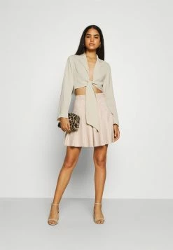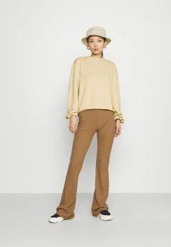 NA-KD GERIPPTES MIT WICKEL-SCHNÜ – T-shirt à Manches Longues – Beige